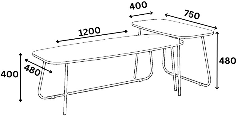 - Комплект от 2 маси с различна височина – използват се заедно или поотделно.